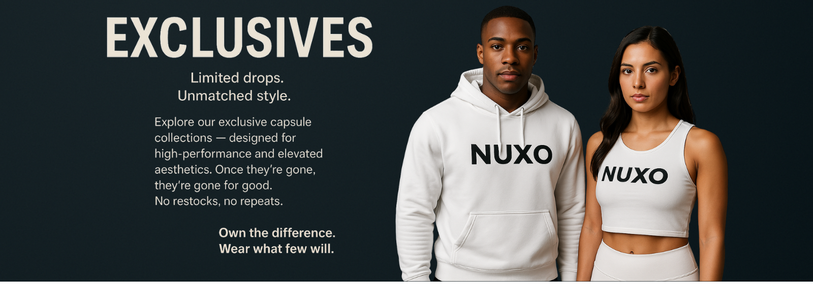 NUXO is a mindset-first fitness brand built for those who train with discipline, purpose, and power.Discover premium activewear for men and women who live in motion.